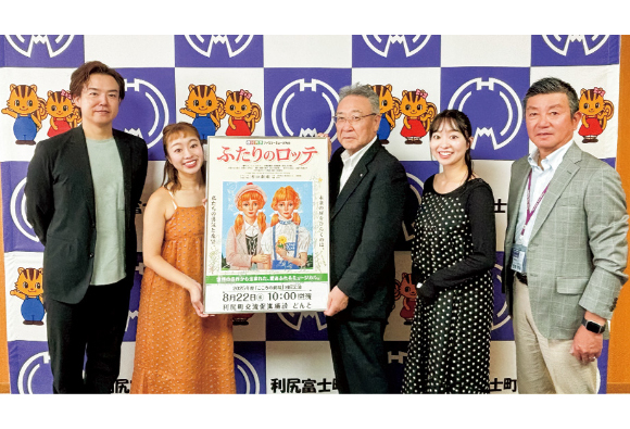20日(水)には、カンパニーを代表して俳優の田原真綾さん、田原沙綾さん、岸佳宏さんの3人が利尻富士町・田村祥三町長、吉田秀昭教育長と、利尻町・上遠野浩志町長、澤谷敬副町長、宮道信之教育長を訪問。利尻富士町・利尻町の自然や特産物のお話などで盛り上がり、なごやかな表敬訪問となりました。